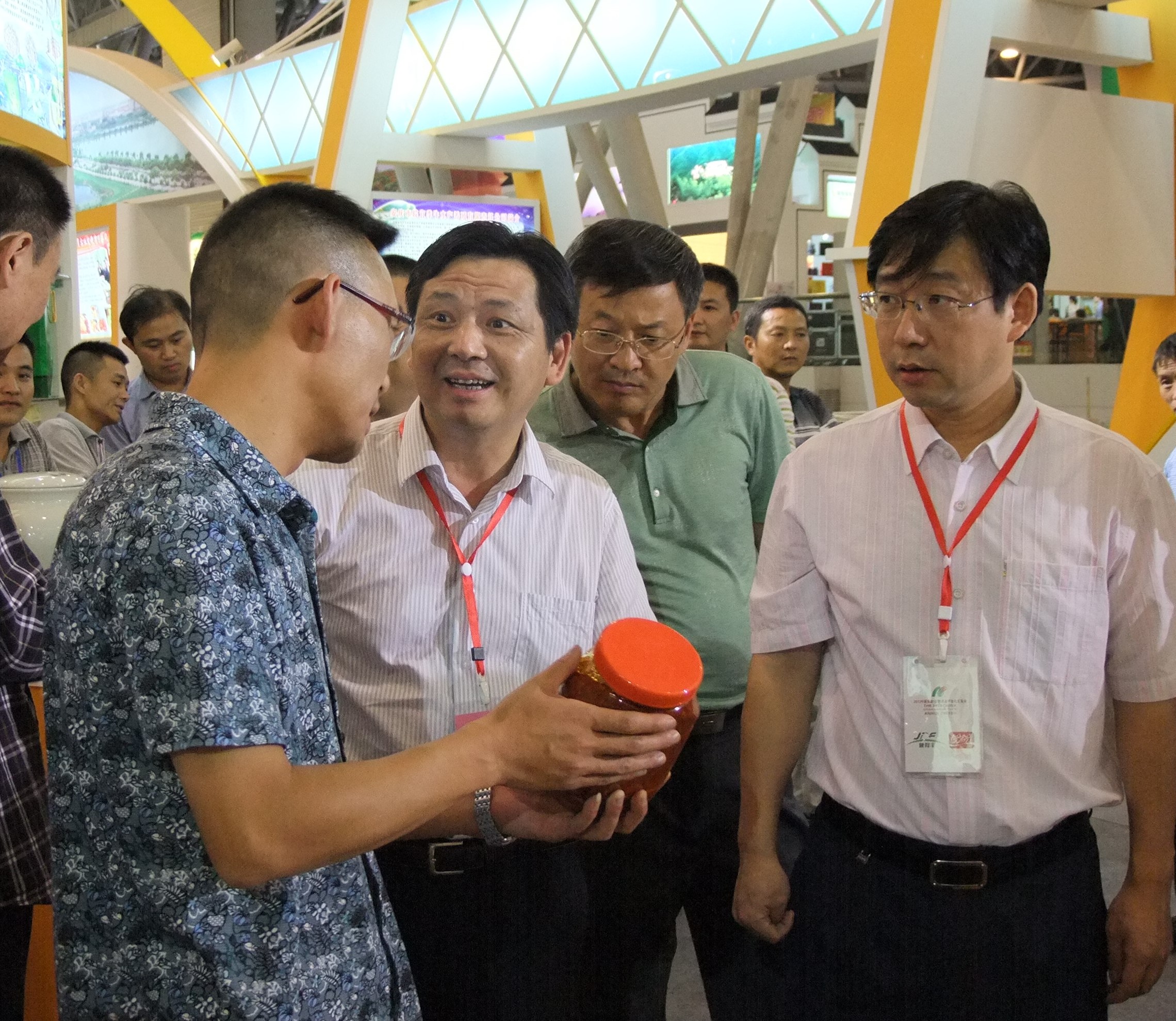 董事長(zhǎng)顏志勇向宣城市委書(shū)記陶方啟(中間) 安慶市委常委、宣傳部部長(zhǎng)董磊(右邊)等領(lǐng)導(dǎo)介紹公司產(chǎn)品